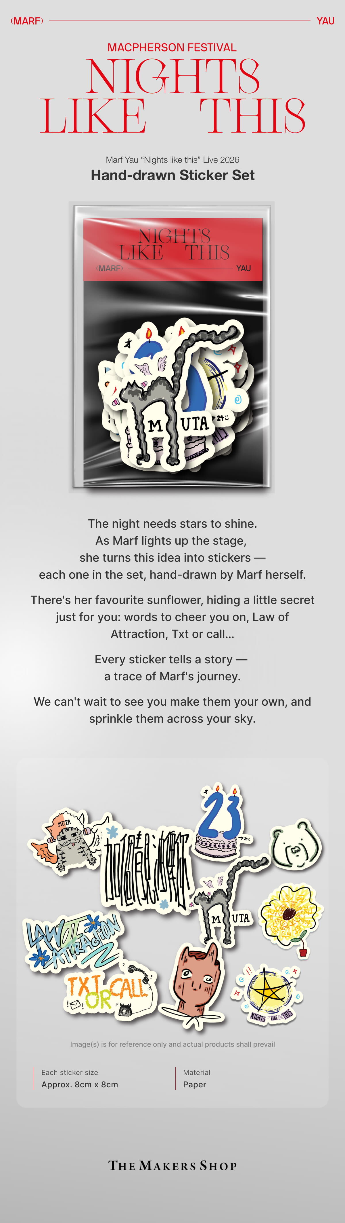 - A set of 10 hand-drawn stickers