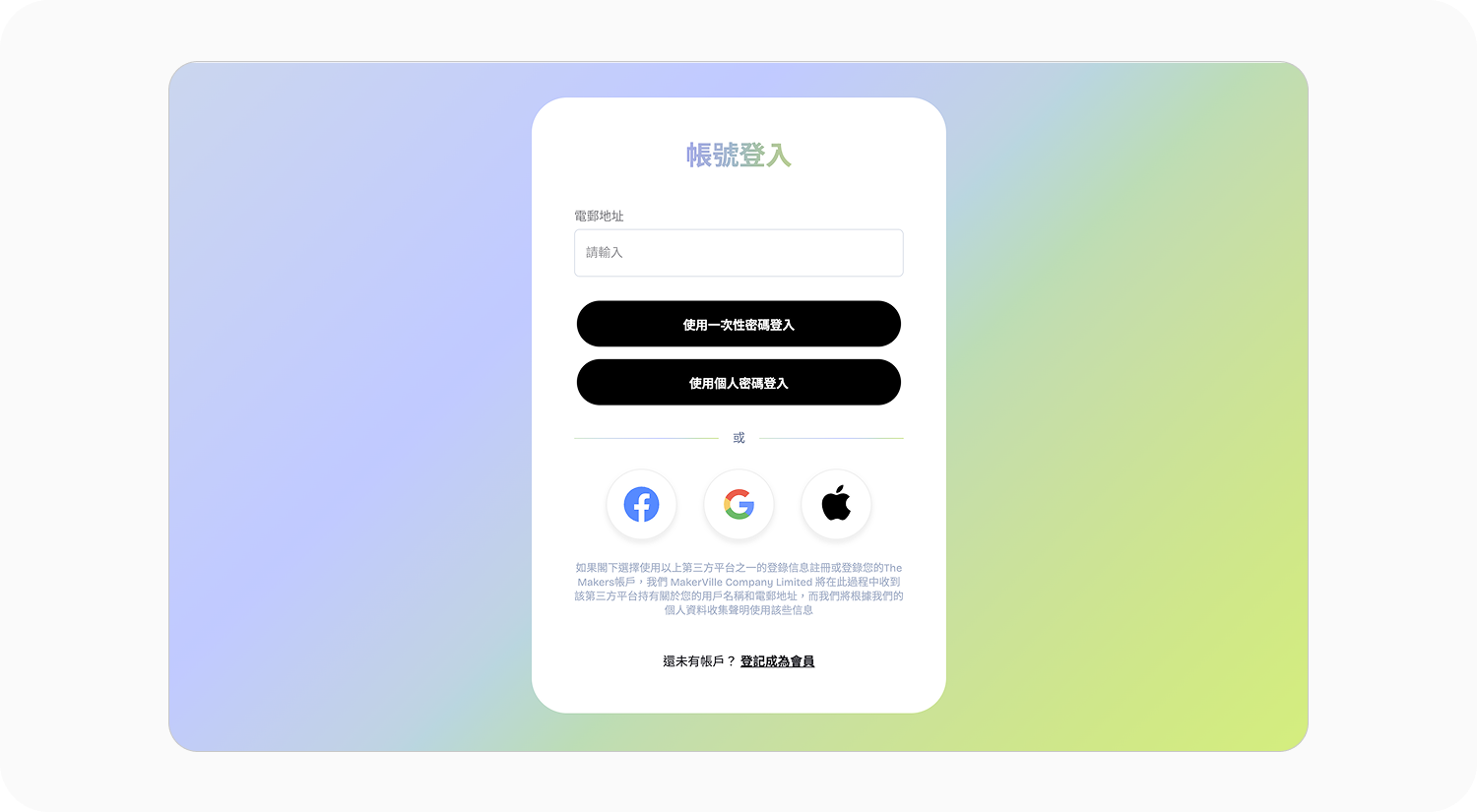 如未有The Makers帳號,可按「登記成為會員」,並填寫所需資料和同意相關條款,完成所有步驟後將跳轉至The Makers Shop首頁。